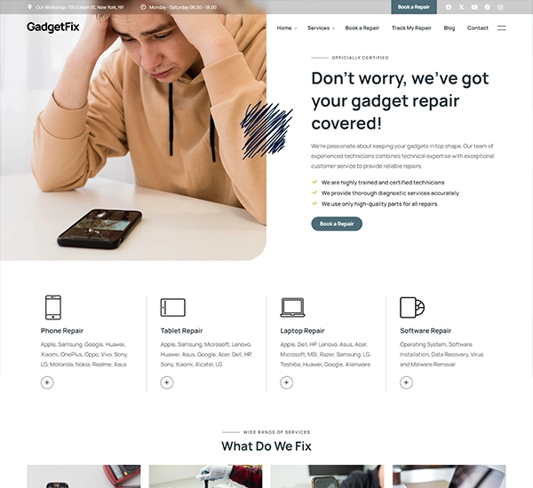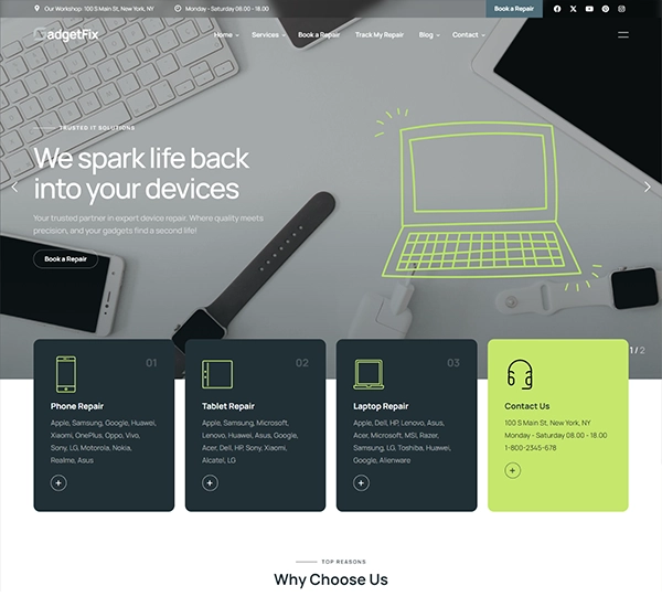 Reparăm o gamă largă de dispozitive, inclusiv telefoane, tablete, laptopuri, desktopuri, smartwatch-uri și console de jocuri.